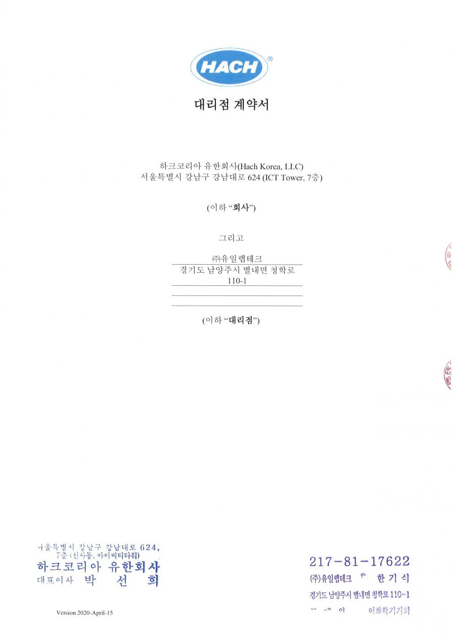 회사명: 유일랩테크 / 사업자등록번호: 217-81-17622 / 대표: 유일랩테크 / 경기 남양주시 별내면 청학로 110-1 제품 및 구매문의 : 02-951-1353 / 팩스 : 02-951-1356